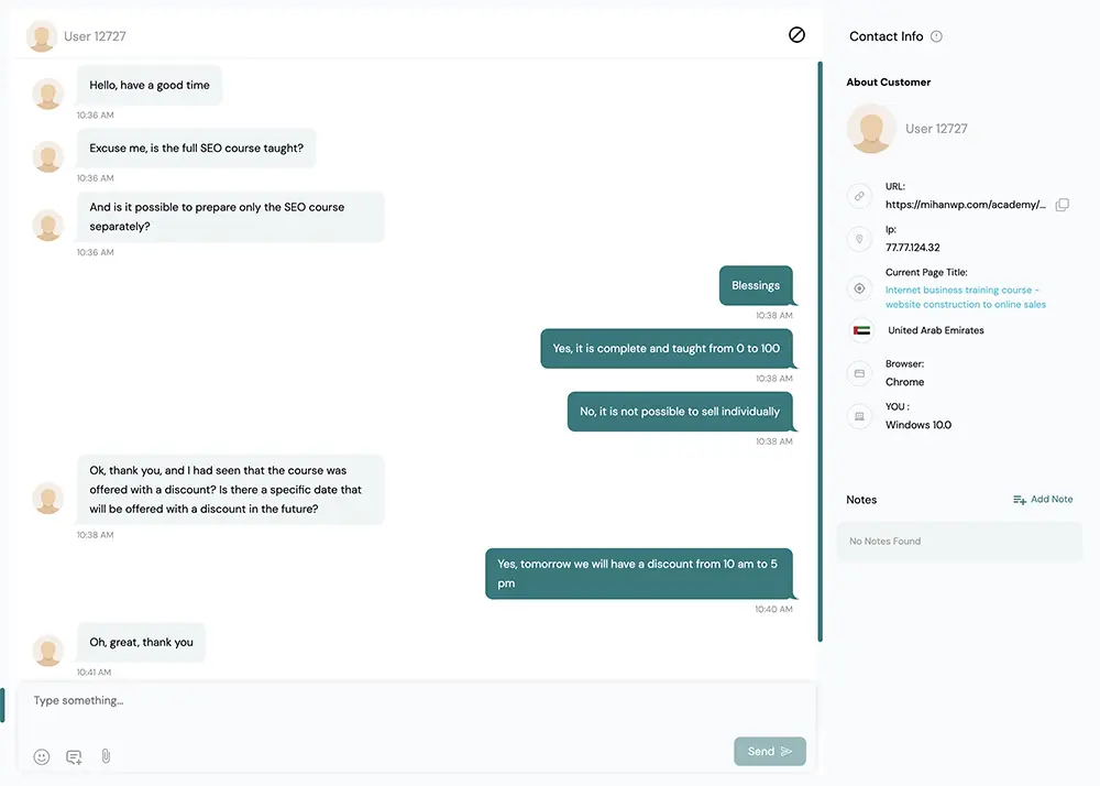 مستقیم به کاربران آنلاین پیام بده و بازدیدکنندهها رو با درگیر کردن در لحظه، به مشتری تبدیل کن!