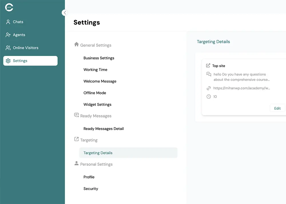 ساعات کاری خودت رو راحت تنظیم کن. چت فقط در زمان کاری نمایش داده میشه!