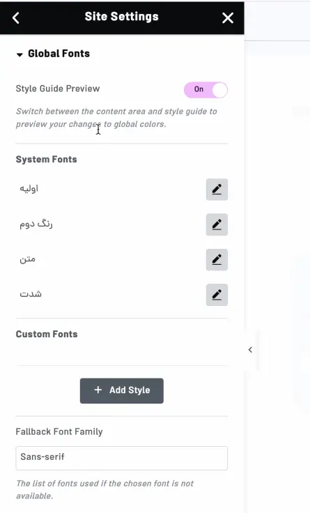 Way number two you can use Elementor to add your own font to your website. I’m using default font it doesn’t matter what theme or what template. I’m using on my website now I have to go to my website from edit with Elementor I have to select site settings here and I can edit and customize my fonts in this panel in global fonts and typography section.