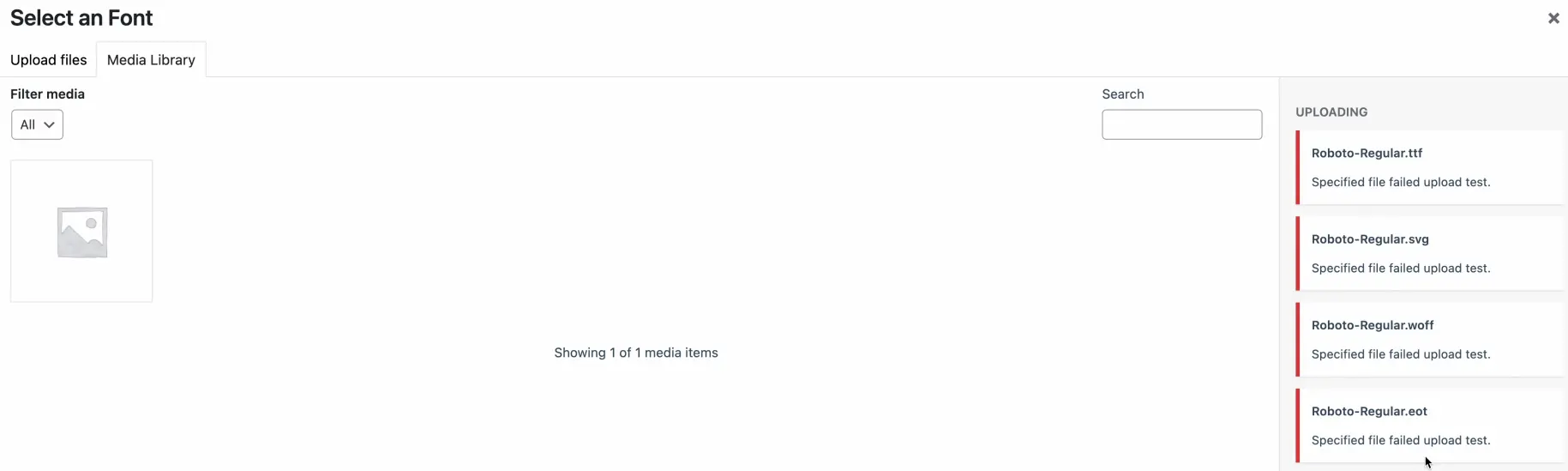 Now I have to how can I upload them here how can I upload them here okay I’m going to upload ttf file maybe it’s not about format you know no it’s not about format it’s about failed upload test. why?