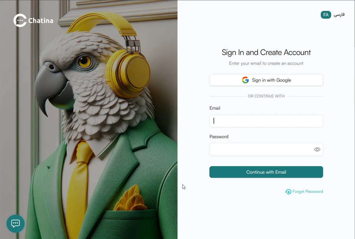first of all first of all we have to go to chatina.ai chatina website and then we have to click on launch app and go to chatina app here you can login or register with your Google account or your email so I will click on sign in with Google and I will register with my Google account I will select one of my Google accounts here